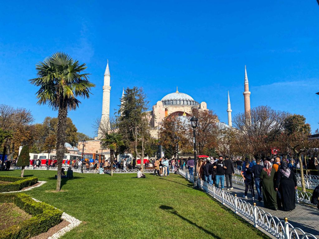 Najposjećenija atrakcija Istanbula koja je u prošlosti bila crkva i džamija dok je 1935. godine Mustafa Kemal Ataturk nije pretvorio u muzej. Otvorena je za sve posjetitelje u vrijeme kada nema molitve. Dobili smo informaciju da je to za sve džamije nakon 14:30 sati. Svi moraju biti prikladno odjeveni. Žene bez obzira kojoj vjeri pripadaju moraju imati pokrivenu kosu. Nije nužno da to bude hidžab, može i majica s kapuljačom. Prizori unutrašnjosti Aja Sofije su zaista očaravajući. Malo je reći da je predivna. Ulaz je besplatan.