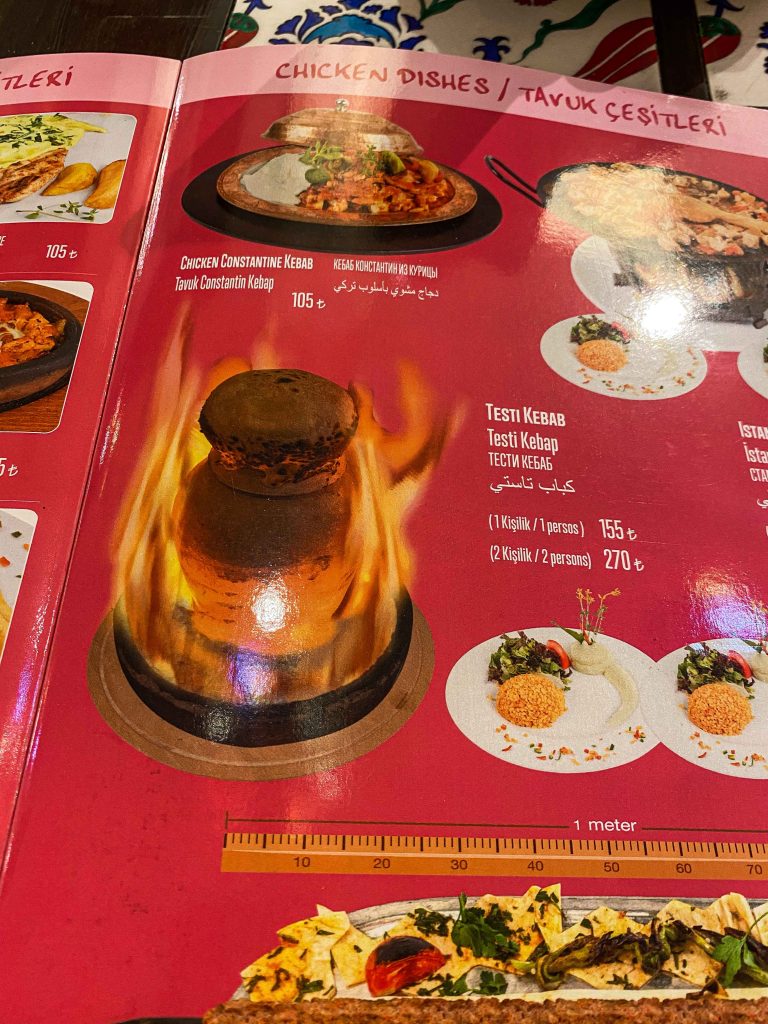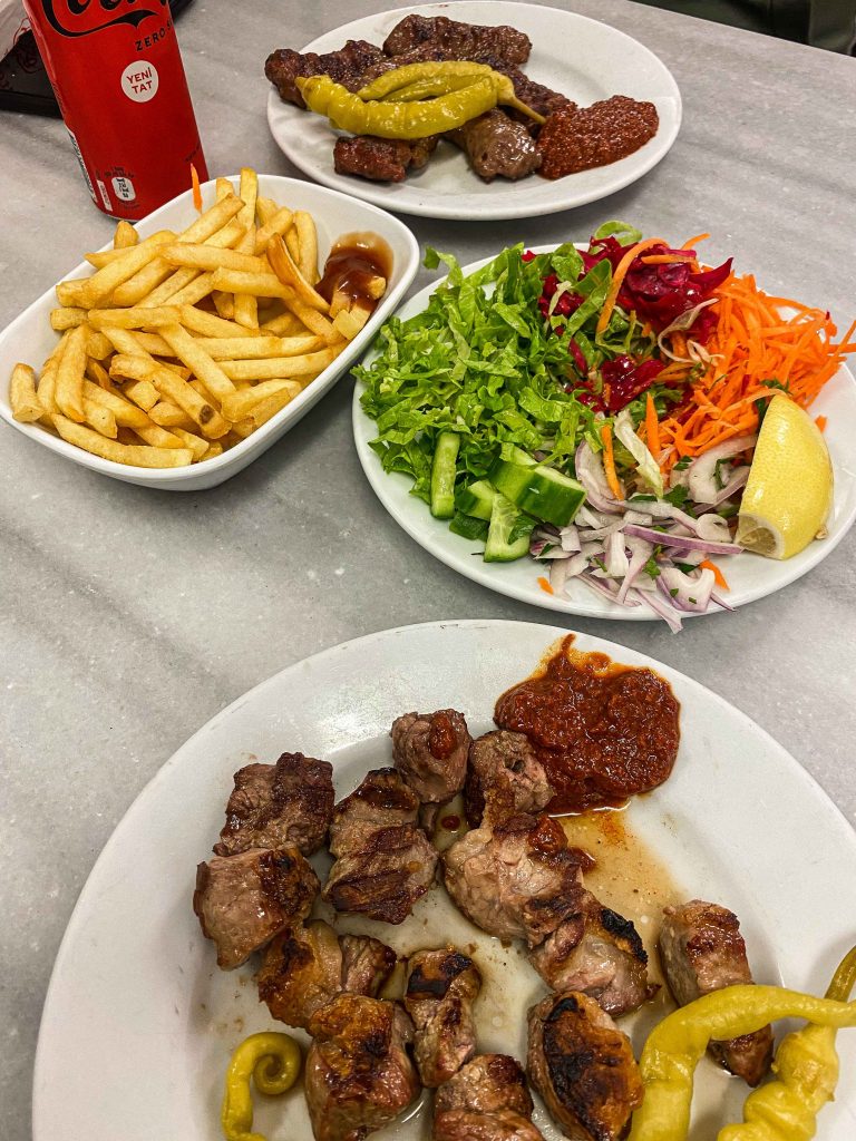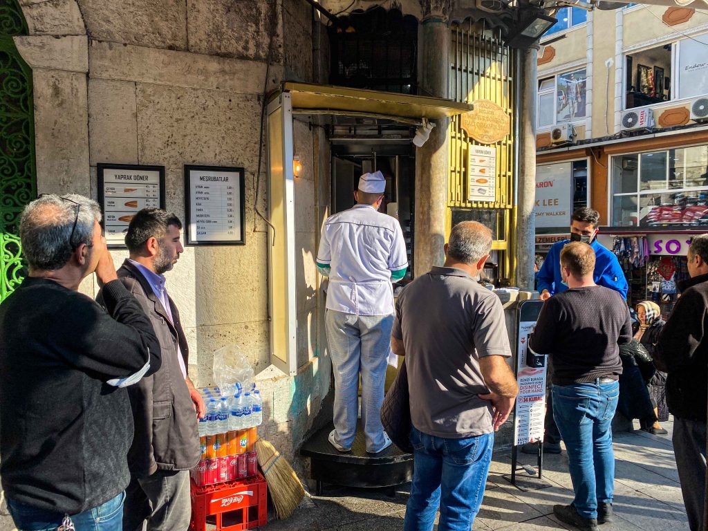 Jedan od najboljih kebaba jeli smo u blizini Grand Bazaar-a. Kada prođete pored ulaza u Grand Bazaar (vidi reel na našem Instagram profilu), pratite ulicu samo ravno i nakon 5 min hoda na samom uglu s desne strane vidjeti ćete uličnu prodavaonicu kebaba Meshur Donerci Haci Osman’in Yeri. Toplo preporučujemo. Uz različite veličine porcija kebaba u ponudi imaju sokove i ajran.